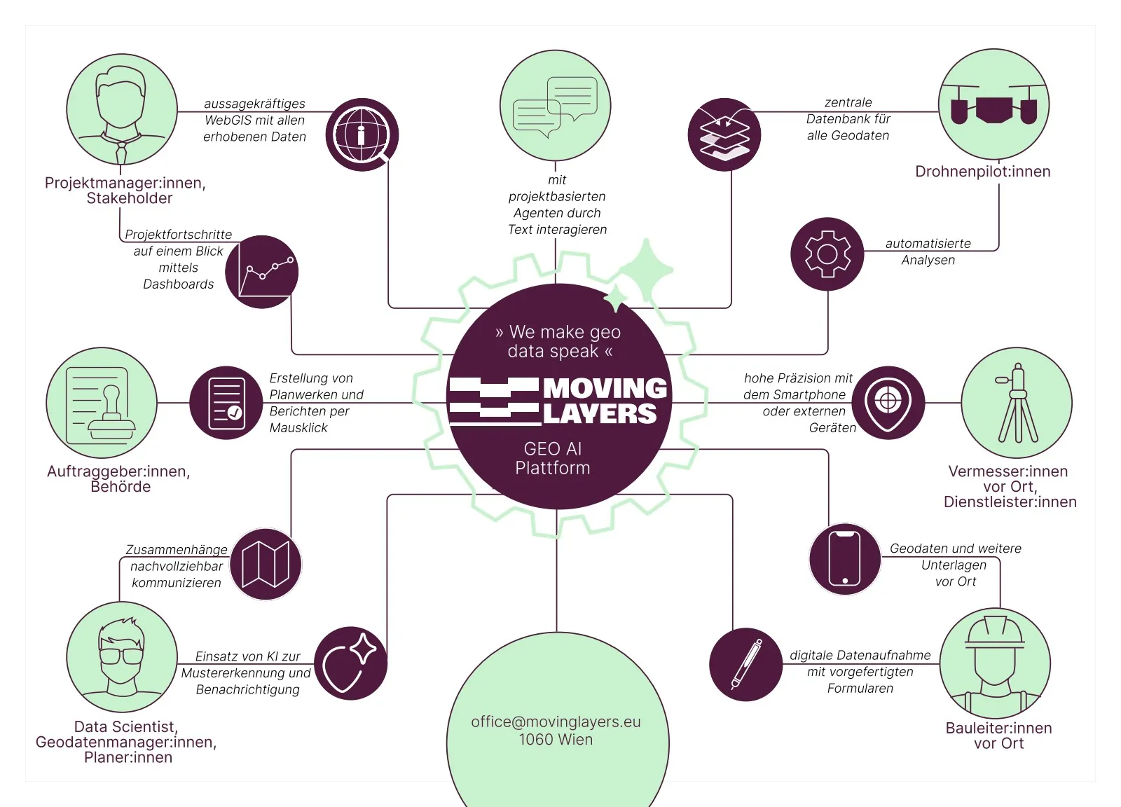 MovingLayers wurde 2019 mit einer klaren Vision gegründet: Geodaten sollten nicht nur für GIS-Experten verständlich sein, sondern für alle Entscheidungsträger in Unternehmen.